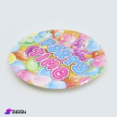 مجموعة من الصحون الملونة، مصنوعة من الكرتون المقوى بتصميمات وألوان جذابة