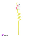 شلمونة راصور شكل يونيكورن، مصنوعة من البلاستيك الآمن غذائياً والمناسب لإعادة الاستخدام مراراً وتكراراً، مع شكل يونيكورن معلق بها من الأعلى لتجعل شرب المشروبات أكثر متعة