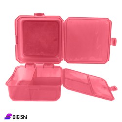 علبة ساندويش من البلاستيك مقسومة الى طبقتين منفصلتين، وطبقة واحدة منهم مقسمة إلى ثلاث أقسام لفصل الأطعمة عن بعضها