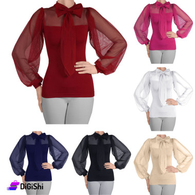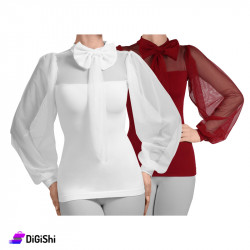 كنزة نسائية شيفون بأكمام واسعة وفيونكا شيفون على القبة