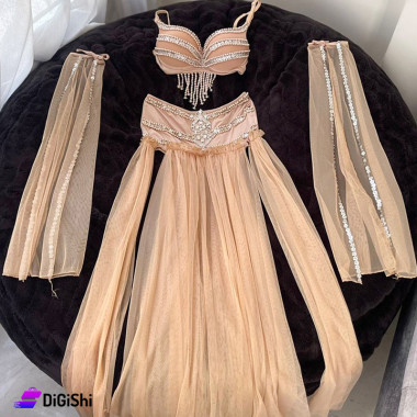 مصنوع من قماش الشيفون وصدر مطرز بالدانتيل