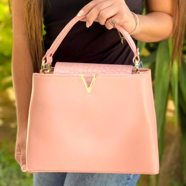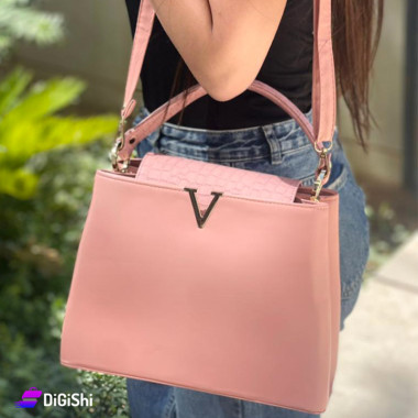 حقيبة جلد نسائية للكتف واليد طبقتين مع إشارة حرف V ذهبية...
