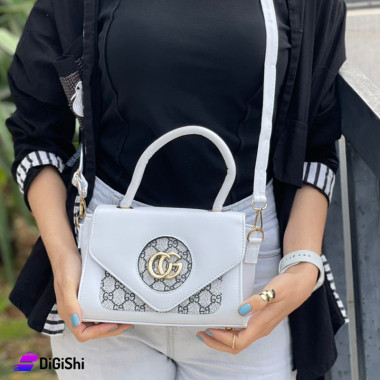 حقيبة نسائية كتف ويد جلد نقشة شعار Gucci لون أبيض