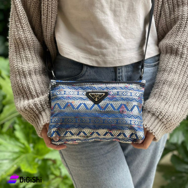 حقيبة كتف نسائية قماش وجلد مطرزة بأشكال فضية سادة لامعة...