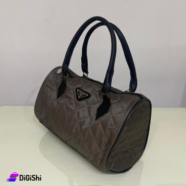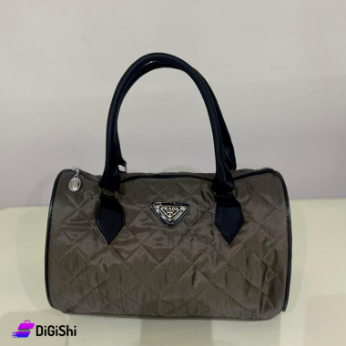 حقيبة كتف ويد نسائية جلد شعار PRADA مع خطوط سوداء لون بني