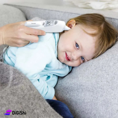 يقيس درجة حرارة الجسم عن طريق الأذن أو الجبهة