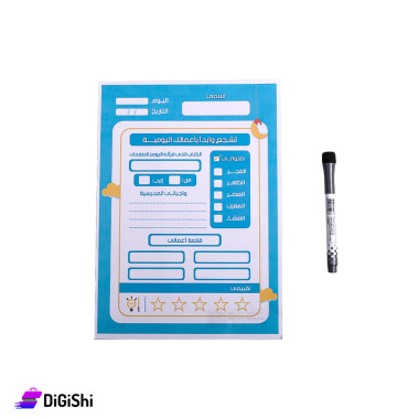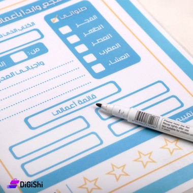 ليتعلم الطفل تنظيم أعماله اليومية يمكن مسح ما يكتب على الورقة مراراً وإعادة الكتابة تحتوي المجموعة على ورقة واحدة وقلم