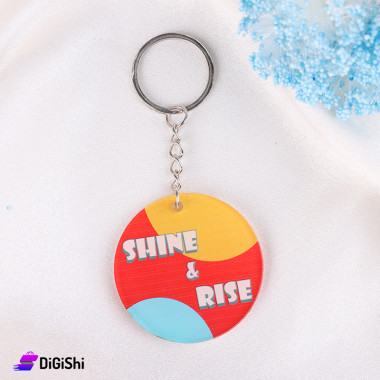 علاقة مفاتيح مصنوعة من البلكسي بتصميم جميل ومحبب شكل شكل دائرة مع عبارة Shine and Rise