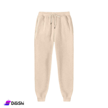 طقم رجالي قطن مكون من شورت وكنزة بقصة واسعة لون بيج