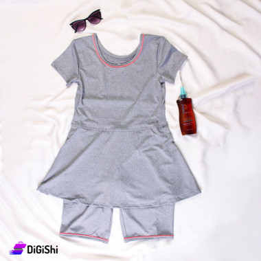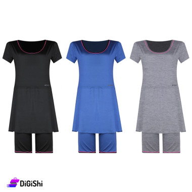 مايو للسباحة مصنوع من قماش مقاوم للماء مكون من قطعة واحدة كنزة نصف كم مع تنورة وشورت