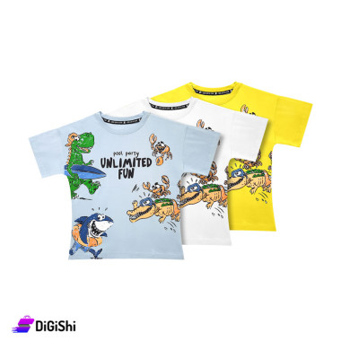 كنزة ولادية نصف كم مصنوعة من القطن 100% مناسبة لأعمار 6، 8، 10 سنوات رسمة طفولية لطيفة