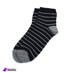 جوارب قطن بشكير رجالي ساق وسط مخطط ZOX Plus - أسود