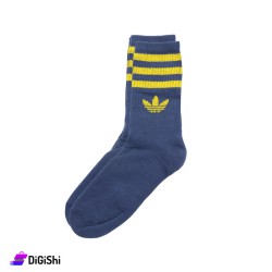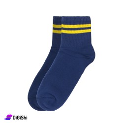 جوارب قطن بشكير رجالية طويلة ZOX - كحلي مع خطوط أصفر