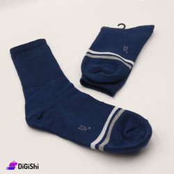 جوارب بشكير ولادي ساق طويلة رسمة خطين ZOX - كحلي