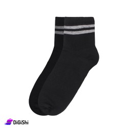 جوارب قطن بشكير رجالية طويلة ZOX - أسود مع خطوط بيضاء