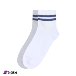 جوارب قطن بشكير رجالي ساق وسط مخطط ZOX Plus - أبيض