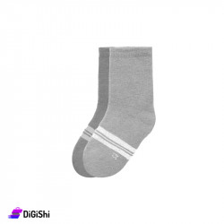 جوارب بشكير ولادي ساق طويلة رسمة خطين ZOX - رمادي