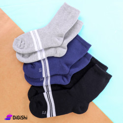 جوارب قطن بشكير رجالي ساق وسط مخطط ZOX Plus - كحلي