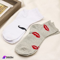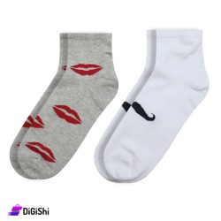 جوارب قطنية زوج رمادي للنساء، وزوج أبيض للرجال 75% قطن + 20% سباندكس + 5% مطاط ملبس