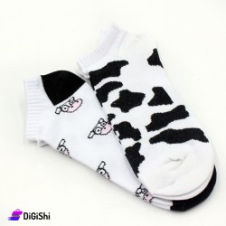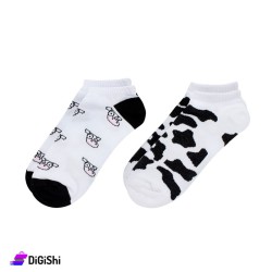 مجموعة جوارب نسائية قصيرة رسمة بقرة ZOX - أبيض