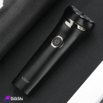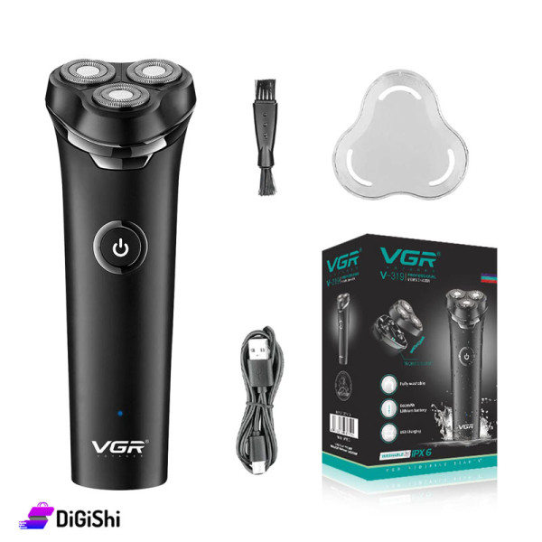 مكونات العلبة: ماكينة الحلاقة، غطاء للحماية، فرشاة تنظيف، ووصلة USB
