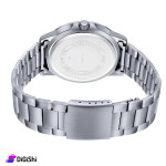 ساعة يد رجالية، بتصميم أنيق كلاسيكي وفاخر، مصنوعة من سوار ستانلس ستيل مقاوم للصدأ، ومشبك ثلاثي الطيات، كما تتميز بشاشة عرض تناظرية سوداء مصنوعة من الزجاج المعدني، كما إنها مقاومة للماء حتى عمق 50متر