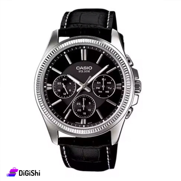 ساعة يد رجالية، بتصميم أنيق كلاسيكي ورياضي في الوقت نفسه، مصنوعة من سوار مصنوع من الجلد الأصلي، تتميز بشاشة عرض تناظرية مصنوعة من الزجاج المعدني