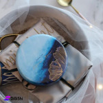 شمعة بشكل شاطئ داخل علبة معدنية زرقاء