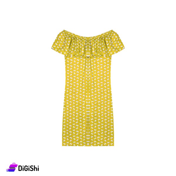 فستان نسائي قصير موديل off-shoulder المحبوب جداً والمواكب للموضة، وهو مصنوع من القطن ومناسب لفصل الصيف بحرارته العالية