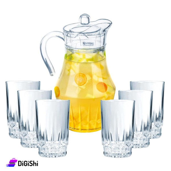 طقم شراب مكون من إبريق و6 كاسات، مناسب للماء والعصائر والمشروبات الغازية وما إلى ذلك، يمكن غسله في غسالة الأطباق بألوان متينة لن تفسد حتى بعد الاستخدام المتكرر