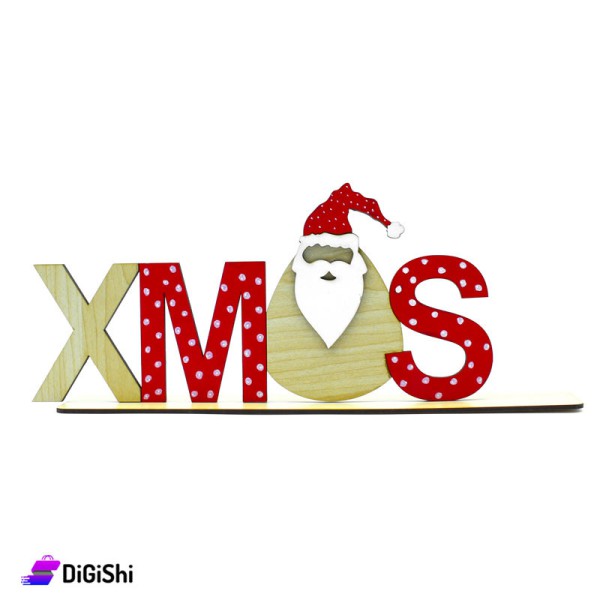 زينة مناسبة لعيد الميلاد على شكل كلمة x-mas لها نتوءين ليتم تثبيتها على القاعدة الخشبية المرفقة معها