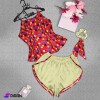 بيجاما نسائية ساتان رسمة ورق شجر - أحمر