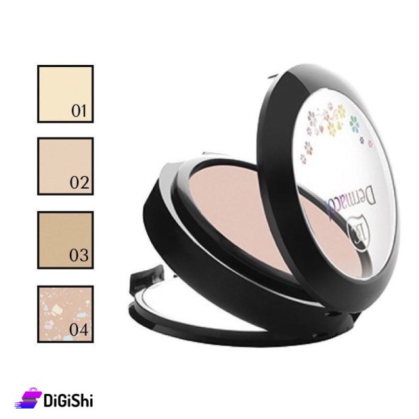يتم تعبئة المسحوق المضغوط المعدني في علبة عملية تحتوي على مرآة وإسفنجة.