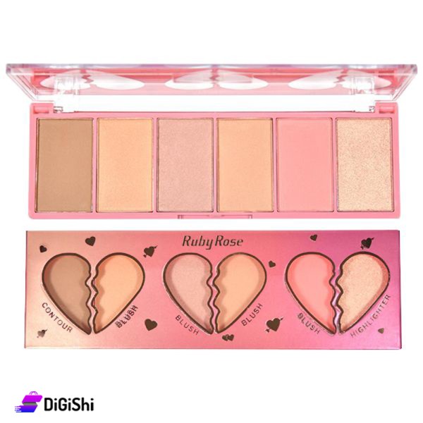 مجموعة هايلايتر وكونتور وحمرة خدود Ruby Rose Face Kid Heart HB 7520