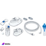 Accessories: Airbrush, adult mask, children's mask, mouthpiece, nosepiece, spare filters, storage compartment for accessories