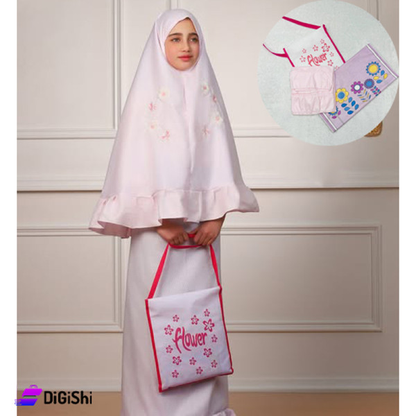 A girls' prayer package, comes with a cloth bag with a distinctive design, consisting of a two-piece girls' prayer set, a long veil and a long skirt, made of high-quality Cornish fabric.
