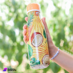 A water bottle made of high-quality plastic, designed in a cute and attractive shape, featuring a Fruits with a background describing nature, and a cover that prevents water from leaking out even when placed in a bag, in addition to a hanger on the side to help you carry it, and it is also easy to drink from it directly