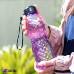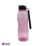 A water bottle made of food-grade plastic material, designed in a modern and elegant style, with a tightly closed cover that prevents water leakage from the bottle, in addition to a fabric hanger that allows you to hang it in the place you want