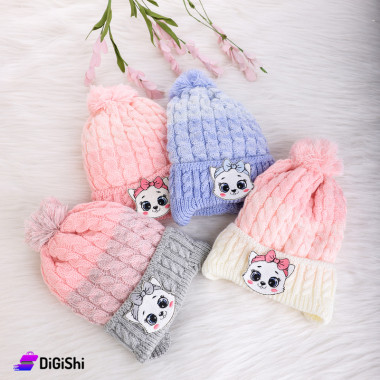 Child's wool set consisting of a hat with a fur lining and a scarf