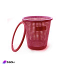 A small plastic wastebasket that holds adequate amounts of rubbish
