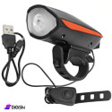 A buzzer equipped with an LED light that is mounted on the handle of a bicycle It is characterized by a strong sound and can be heard up to wide distances, It also has an LED light that detects large distances from the front and sides, It has 3 levels of strong, medium, and weak to control the intensity of the lighting as needed, It is considered small in size and suitable for hiking and racing on bicycles