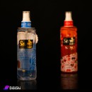Designed in the shape of a round plastic bottle, with a sprayer and a cap.