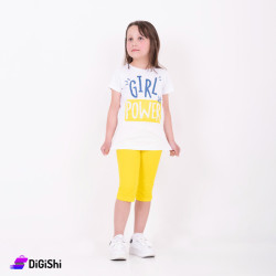 It consists of two pieces Ankle-length pants below the knee and a half-sleeved top