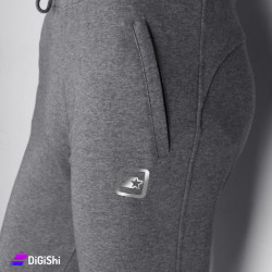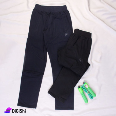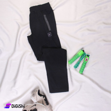 It has an elastic band at the bottom of the pants Elastic waist with drawstring Two side pockets with zip 65% Cotton + 35% Polyester