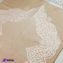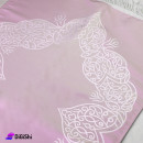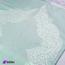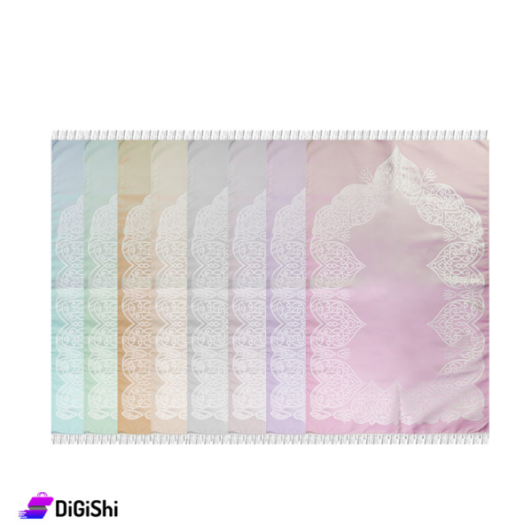 A prayer rug made of fabric with a soft texture like silk. It is distinguished by its modern design, which is designed with delicate details in the form of flowers and decorations all over the rug with colored threads, which gives it a kind of modernity and elegance.