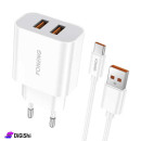 Save time and space by charging two devices simultaneously with this charger, the product provides two USB ports with a total power of 12W, with its wide compatibility and accepts 100-240V current, so it will work well with outlets of different electrical standards