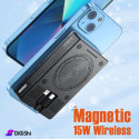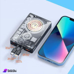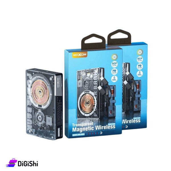 The power bank contains a high-quality and safe lithium-polymer battery that protects devices from overvoltage, and it has a capacity of 10000 mAh that charges devices fully and thus is ideal for taking with you on long trips and outings, and it also features the ability to stick to the mobile phone