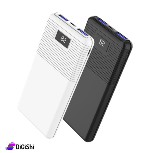 Power bank with a beautiful and wonderful design, it contains a digital screen to know the charging percentage, and a high-quality battery with a capacity of 10,000 mAh, which fully charges the devices and charges quickly