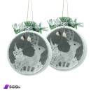 A pair of Christmas tree ornaments, with a unique and distinctive design of an open ball with a cute deer inside, with a beautiful and bright appearance