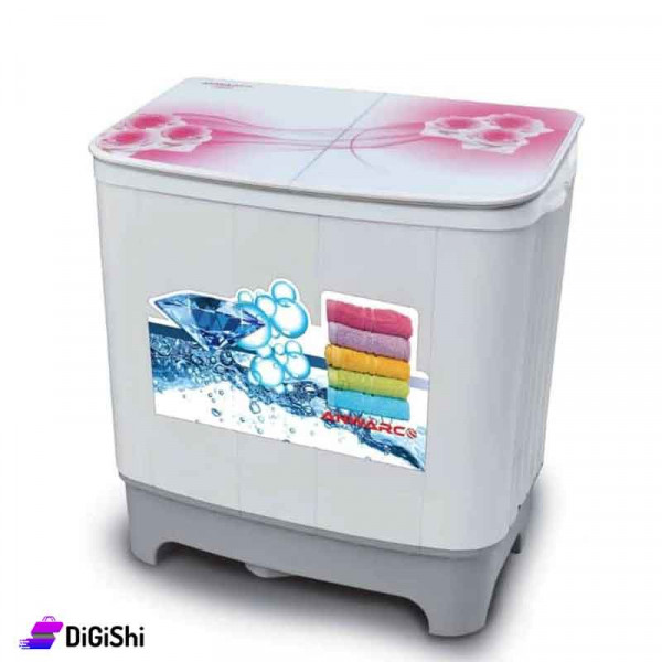 A two-tub washing machine made of shock-resistant treated plastic with a crystal cover with a distinctive design. It is equipped with two water inlets for the washer and dryer and is equipped with a pump to drain the water. It also has a timer for washing and drying